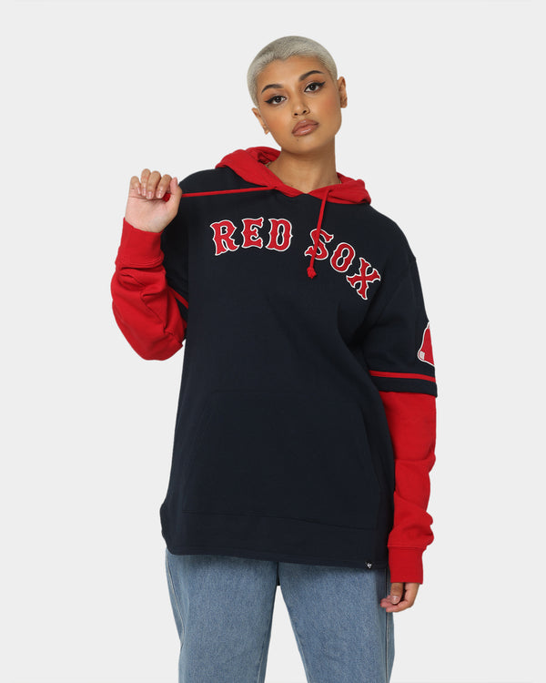 Combine your love of sports and streetwear by copping the Boston Red Sox Shortstop Hoodie. This bold hoodie features contrast sleeves and hood, a layered look, and embroidered team logos on the sleeves and chest. Don't sleep on this iconic hood.