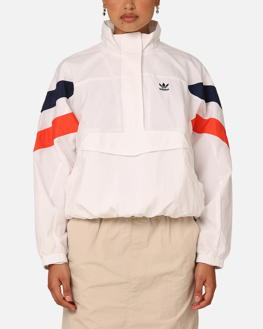Take a walk on the sporty side in this Adidas windbreaker. Inspired by '80s basketball style and updated for modern life, it lets you control the vibe. The loose shape and lightweight, pullover build create a laid-back look, while smooth nylon ripstop fabric stands up to breezy days. Whether you're pairing it with joggers for a casual Saturday or dressing it up with jeans for a night out, this windbreaker lets you choose your vibe — and the edge that comes with it.