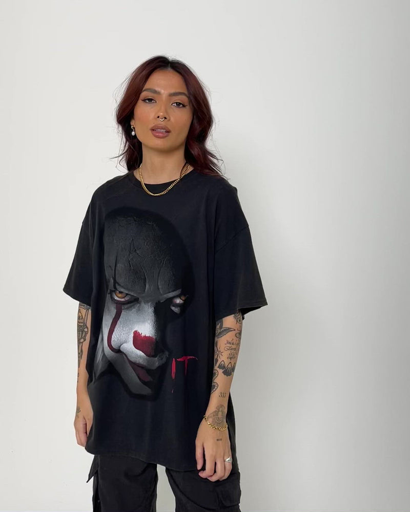 You'll float too with the IT Movie Vintage T-Shirt. With printed and pre-cracked graphics to the front and back on a premium black wash design, you'll love this vintage look and feel. Featuring durable twin-needle construction and a ribbed crewneck for comfort. Cop the tee of your dreams today!