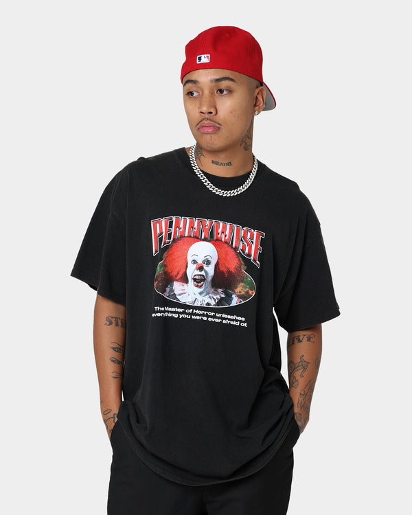 Face your fears with the Pennywise Vintage T-Shirt. With printed and textured graphics to the front and back on a premium black wash design, you'll love this vintage look and feel. Featuring durable twin-needle construction and a ribbed crewneck for comfort. Cop the tee of your dreams today!
