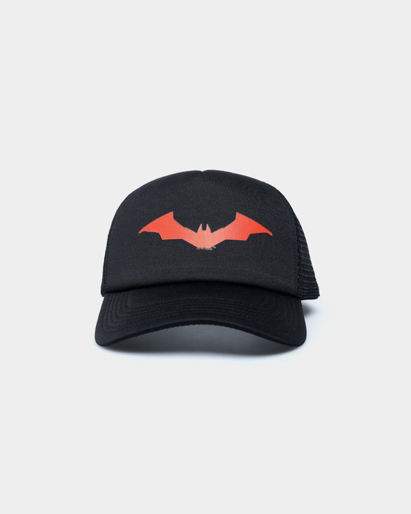 Embody darkness in The Batman Trucker Cap. Featuring premium construction and the iconic Bat logo printed to the crown while mesh back panels keep things cool with the lightweight design and pre-curved brim to finish. Only those with no limits will be able to cop this exclusive drop.