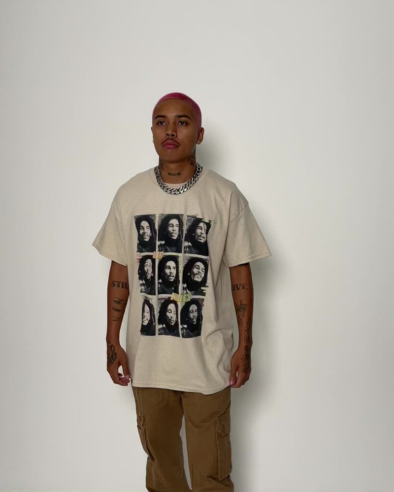 Join the soul revolution with the Bob Marley Photo Grid T-Shirt. With printed graphics of the man himself to the front, this piece has a looser silhouette with dropped shoulders. Made with premium construction, it is [b]the[/b] tee to rep in.
