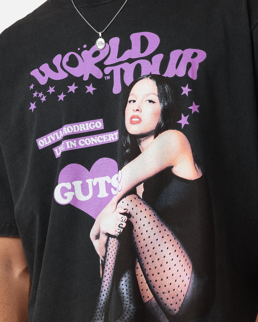 Merch Specialists Bravado have launched another range of limited vintage tees with some of your favourite artists. This Olivia Rodrigo Guts tee features printed graphics, a ribbed crewneck, and twin needle stitching built to last and look great in the latest drops available now while stocks last at Culture Kings.