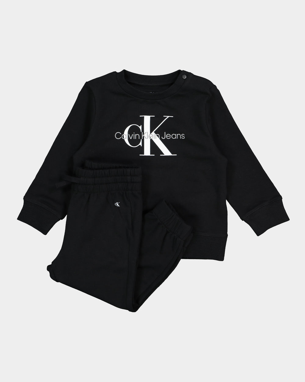 Add a sleek look to your little one's fire 'fits with the Calvin Klein Infants' Monogram Sweatshirt Set. Featuring a buttery soft construction and a French Terry interior, this set has elasticated trims for maximum comfort and a snap button at the shoulder for an easy get-ready. With a printed brand logo on the front for added style points. Cop yours today!
