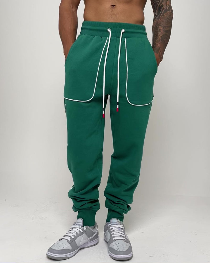 Owen is wearing size M for a standard fit. Relaxed through the legs with tapered cuffs.