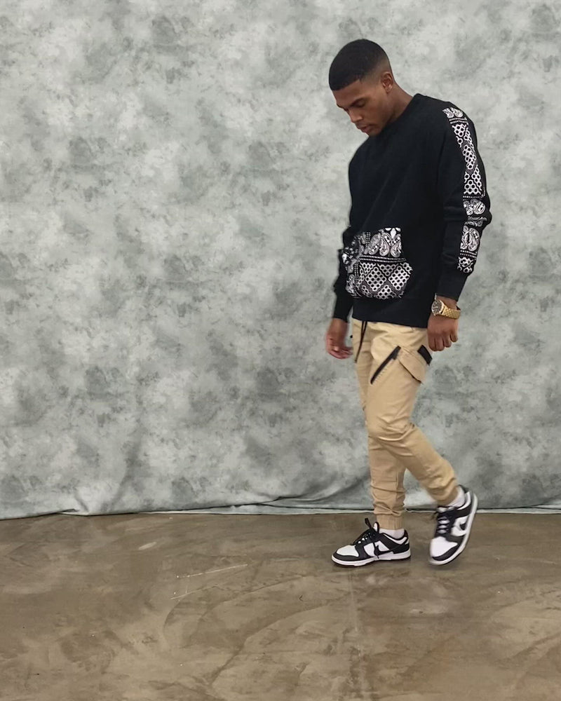 A unique piece, the Bandana Ultra Pocket Crewneck combines a distinctive pattern with a heavyweight fabric. The sleeves and kangaroo pocket feature a custom bandana print on a premium crewneck.
