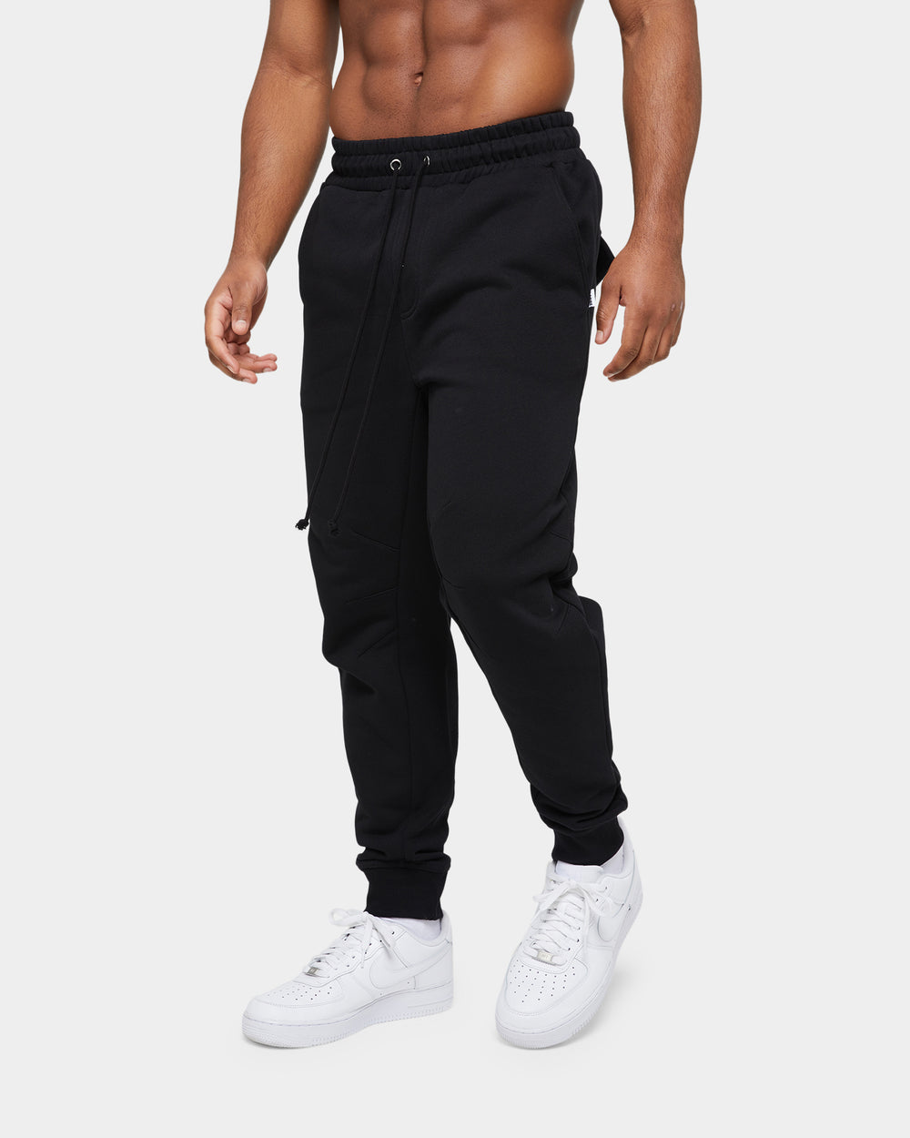 Fabian is wearing size M for a standard fit. Relaxed in the legs with tapered cuffs.