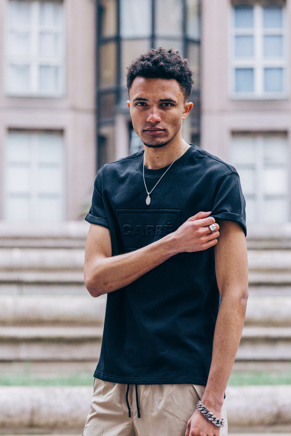 Carré "Motion Fabric" is the perfect combination of cotton, stretch, and fabric weight. Made to go through the motions whether that's day-to-day wear or nighttime excursions, the fabric is built to wash, wear, and last. To match the quality of the fabric, Carré has developed the ultimate men's t-shirt that fits like a glove. The Imprint Short Sleeve T-Shirt features side splits and extended length that is snug to the body with pin roll sleeves for the right arm exposure.