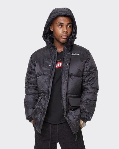 The Roadman Puffer Jacket is a must-have from Carré. With a classic puffer jacket cut and styling, it's perfect for when the weather is cool out. Features include a full-length front zip, dual slant front pockets with button flap closure, padded lining, and a removable hood.