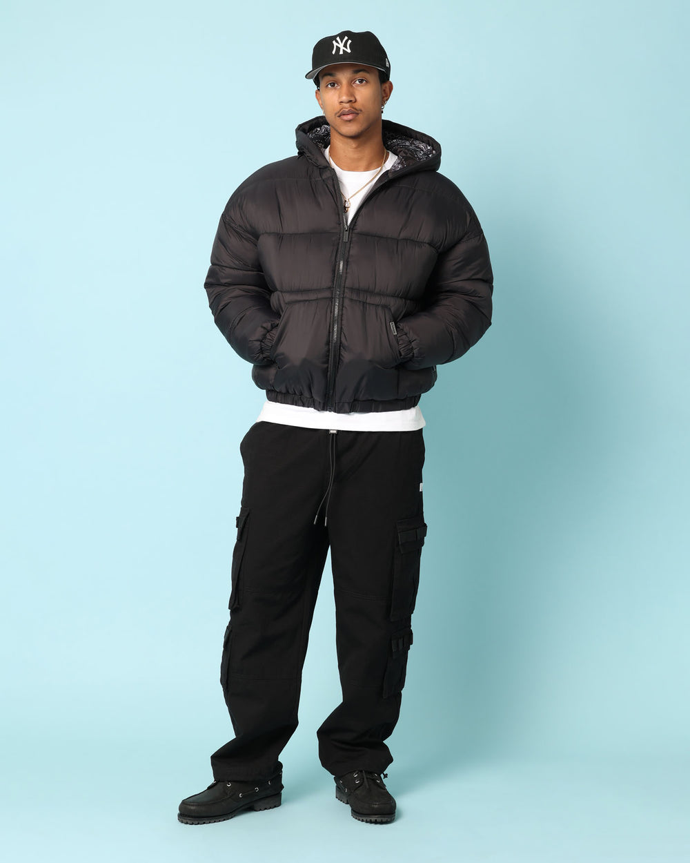 Revamp your winter 'fits with the Odyssey Puffer Jacket. Designed to heat things up, this super cosy jacket features elasticated trims to lock in the warmth and give you an incredibly flattering fit, an all over paisley print on the interior and dropped shoulders for a carefree look. Secure yours today, while stock lasts.