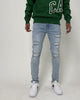 The Rugueux Distressed Skinny Jean is made in premium denim with a comfortable stretch. Abrasions through the front give a rough aesthetic and the back is finished with a suede leather Carré label. Quality Parisian streetwear is what Carré is all about.