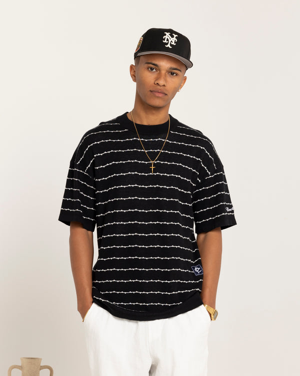 Elevate your wardrobe with the Thorny Oversized T-Shirt. Featuring a ribbed crewneck, an all over knitted print and an ultra comfortable construction. Topped with an embroidered script logo on the sleeve to finsih the look.