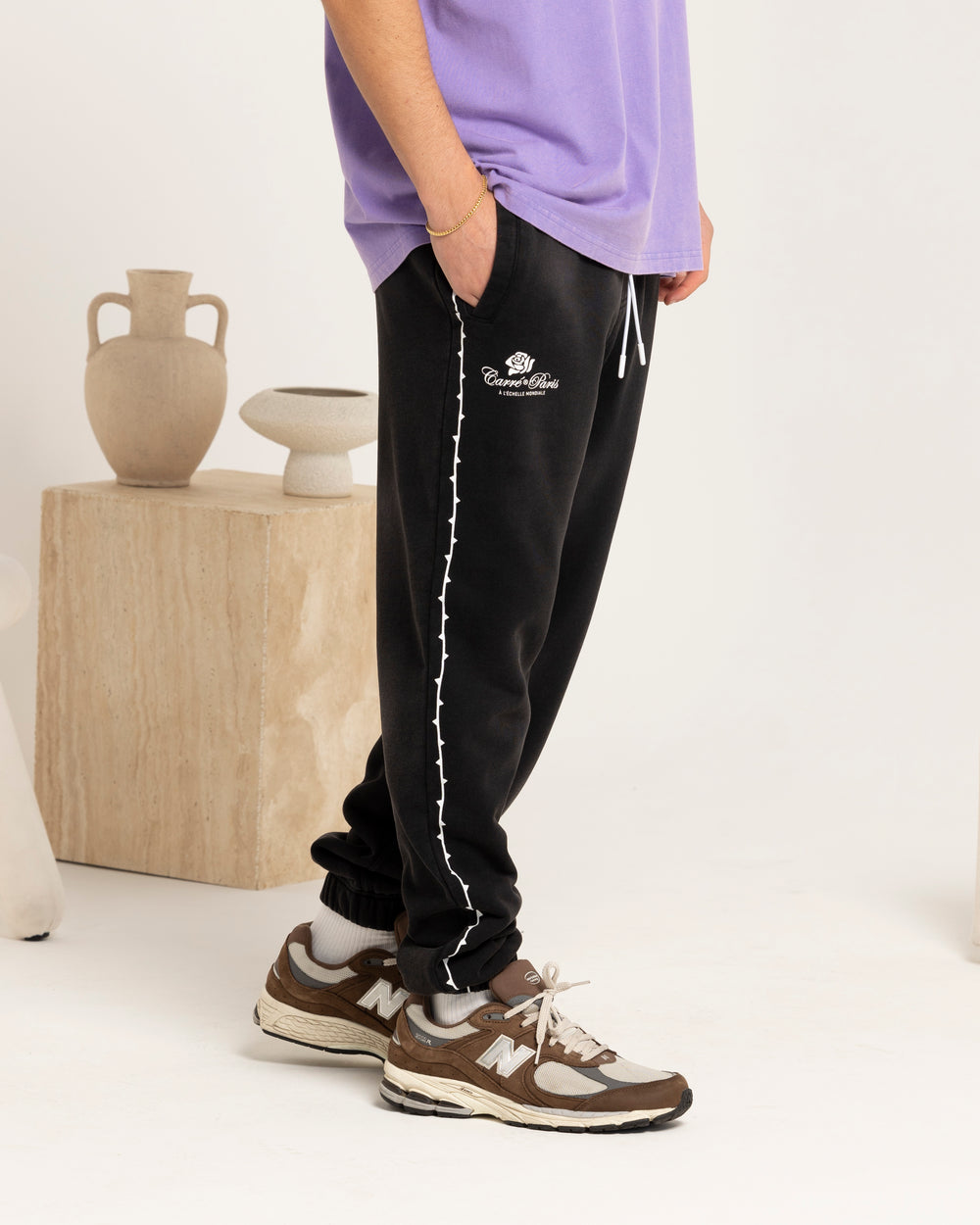 Look good and feel good in the Thorny Sweatpants. These pants feature an elasticated waist and adjustable drawstring for a super comfortable fit, ribbed cuffs to lock in the warmth and a vintage wash to finish it off. Don't miss out and grab yours today.