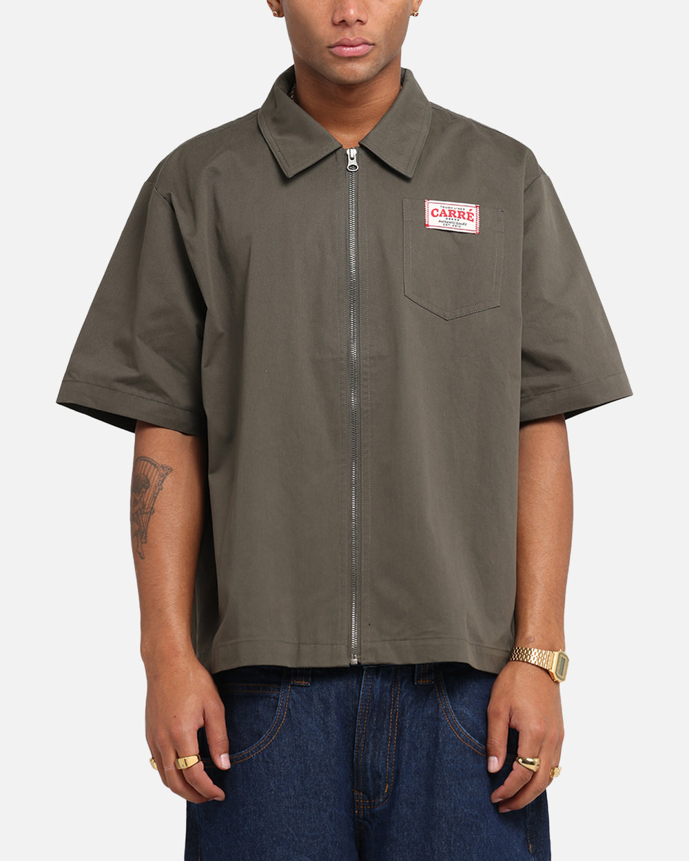 Level up yours fit's with the Workwear Zip Up Shirt. This shirt features a woven brand label to tie you close to the brand with a full zip up close to customise your look. While the dropped shoulders gives you a laidback streetwear vibe. Cop yours today at Culture Kings.
