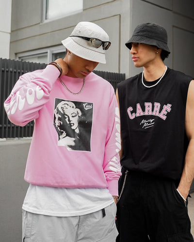 Carré is back with another epic collaboration, this time celebrating the iconic superstar Marilyn Monroe. The Carré X Marilyn Monroe Marilyn Monroe Crewneck features printed graphics of the elegant Monroe, elevating a basic jumper to a statement piece. With dropped shoulders for a streetwear look, and brushed fleece interior and ribbed trims for ultimate comfort. Cop yours today!