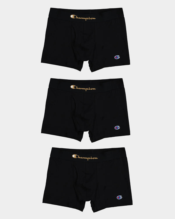 Keep comfortable and on that streetwear level from head to toe with the Champion 3 Pack Underwear. Super soft, stretch fabric boxer briefs mold to your body and move with you. With a contoured pouch and an elasticated waistband to keep you at maximum comfort all day long. Cop yours today.