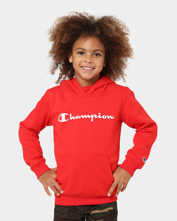The Champion Script Hoodie is ready for fun in any weather. With a front pocket for storing all the essentials and ribbed details on the cuff and hem band, it's made for all types of adventures - both inside and out. This cotton blend construction ensures this hoodie can take whatever your kiddo throws at it. Get your hands on it today!