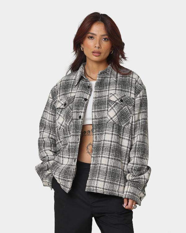 Stay stylish and warm in the Script Flannel by Club Paradise with its woven flannel exterior and buttery-smooth fleece interior. This jacket also features a scooped hem and an embroidered brand logo on the back.