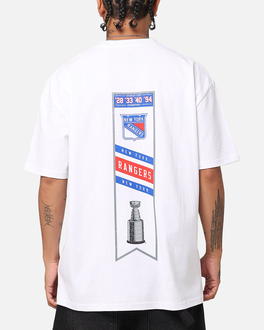 Get game day ready with the New York Rangers 1994 Cup Heavyweight T-Shirt. The twin-needle stitching on a premium cotton construction lets you know that this tee was made to be worn day-in and day-out. While the dropped shoulders and ribbed crewneck gives you that laidback look we know you've been looking for in a staple tee. This one's selling fast so be sure to get in quick and cop it today at Culture Kings