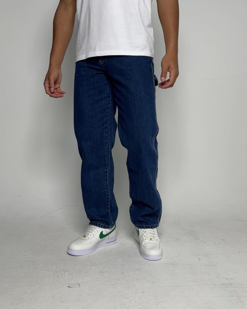Built for the day the Relaxed Fit Carpenter Jeans from Dickies are durable and versatile. The straight wide leg provides extra room around the thigh and seat giving you more movement. The dual back pocket and hammer loop keep your tools close by or just add a little style to your denims. Cop yours ytoday for a classic streetwear vibe.