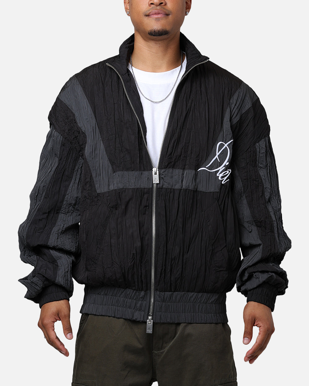 Make a statement with this Crinkled Nylon Track Jacket by Diet Starts Monday. With a 90's inspired look, this jacket features an embroidered logo, contrast panels, and ribbed trims on a crinkled nylon fabric that is perfect for any occasion. Cop yours today at Culture Kings.