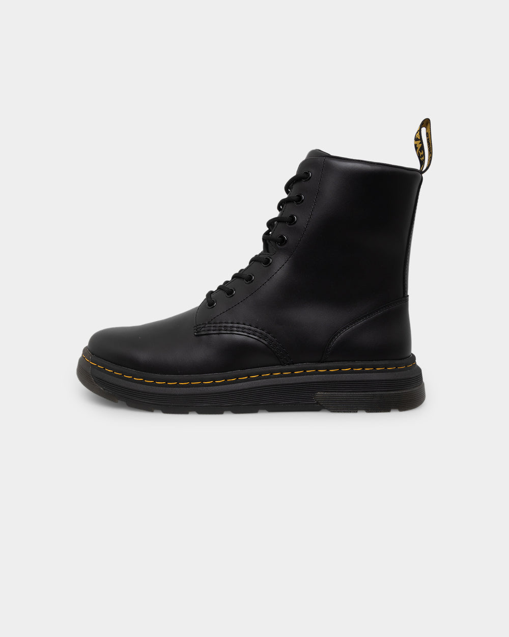 - Dr. Martens classic heritage markings, yellow stitching and heel loop are here alongside a Dr. Martens deboss branded tongue patch