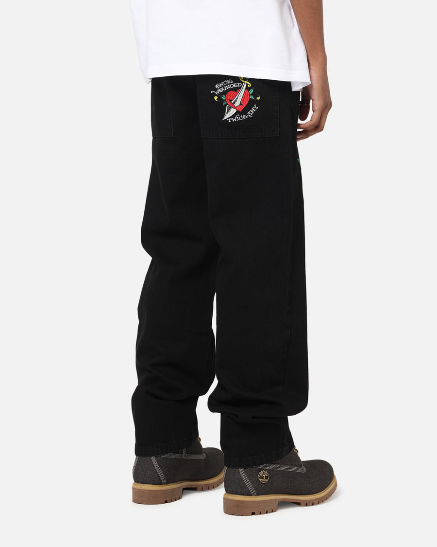 Step up your style game with the Ed Hardy Once Wounded Jeans—where classic craftsmanship meets bold artistic expression. Designed to celebrate individuality, these jeans feature unique embroidered graphics that celebrate the artistic tattoo designs of Ed Hardy and details that make a statement. Finished with premium denim construction and a zip close for a classic look and feel. This is a must-have in any wardrobe.