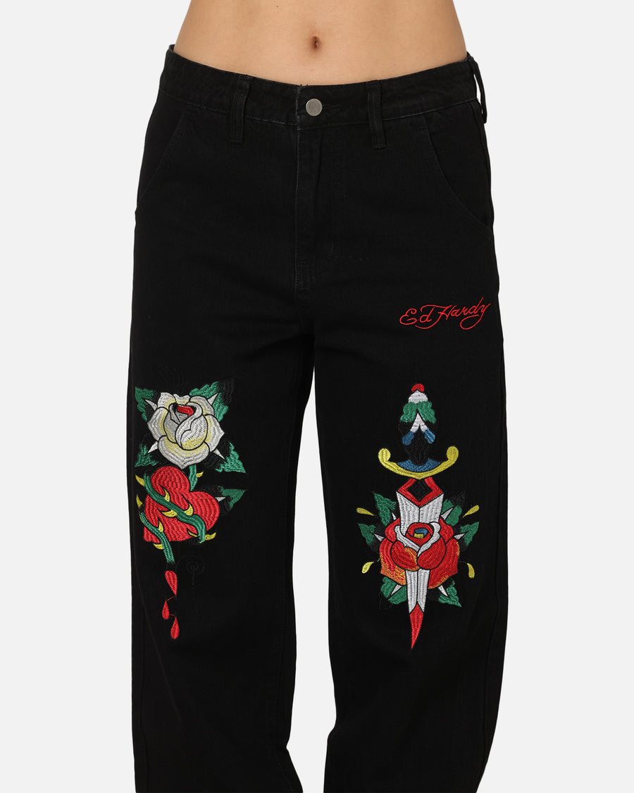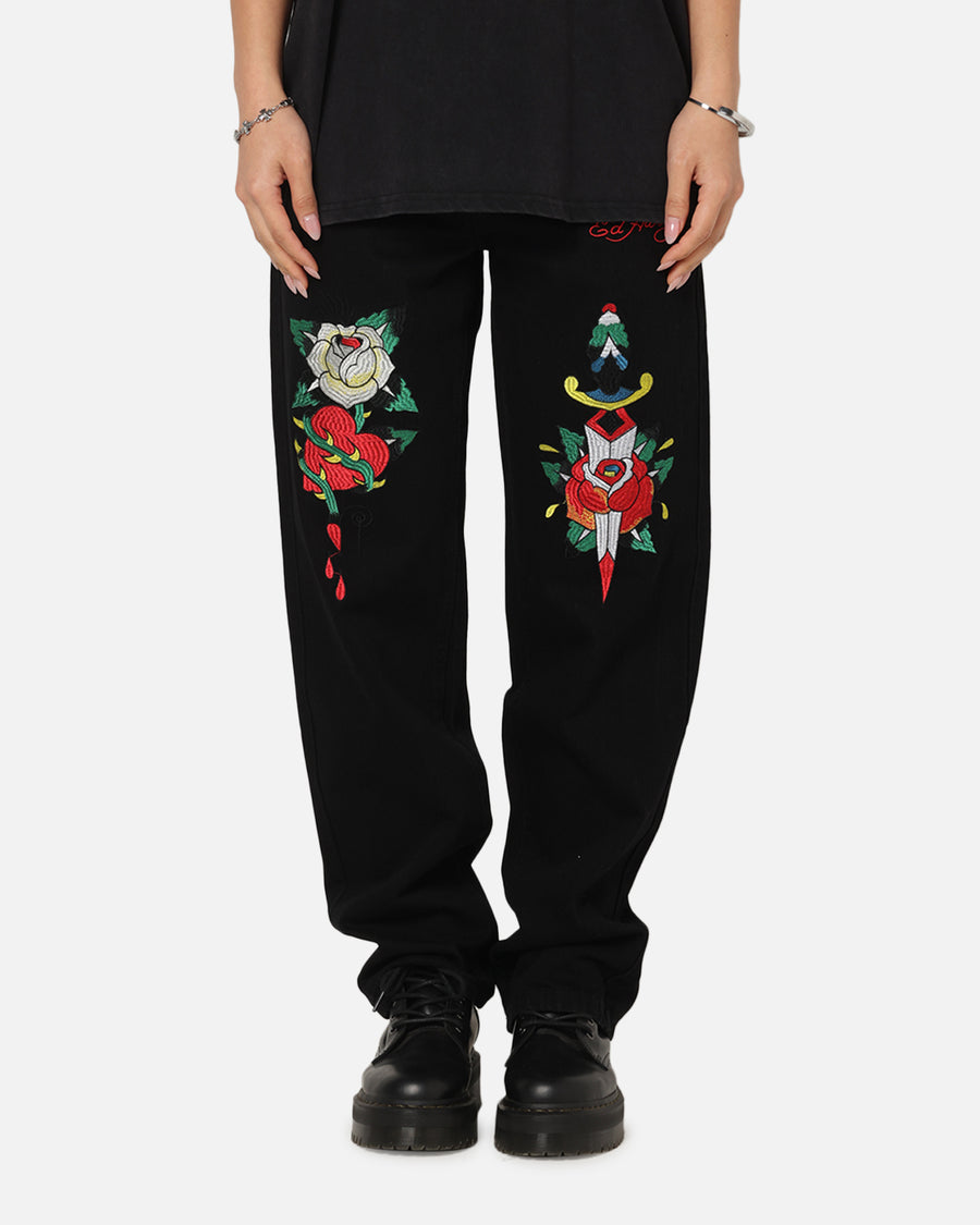 Step up your style game with the Ed Hardy Once Wounded Jeans—where classic craftsmanship meets bold artistic expression. Designed to celebrate individuality, these jeans feature unique embroidered graphics that celebrate the artistic tattoo designs of Ed Hardy and details that make a statement. Finished with premium denim construction and a zip close for a classic look and feel. This is a must-have in any wardrobe.