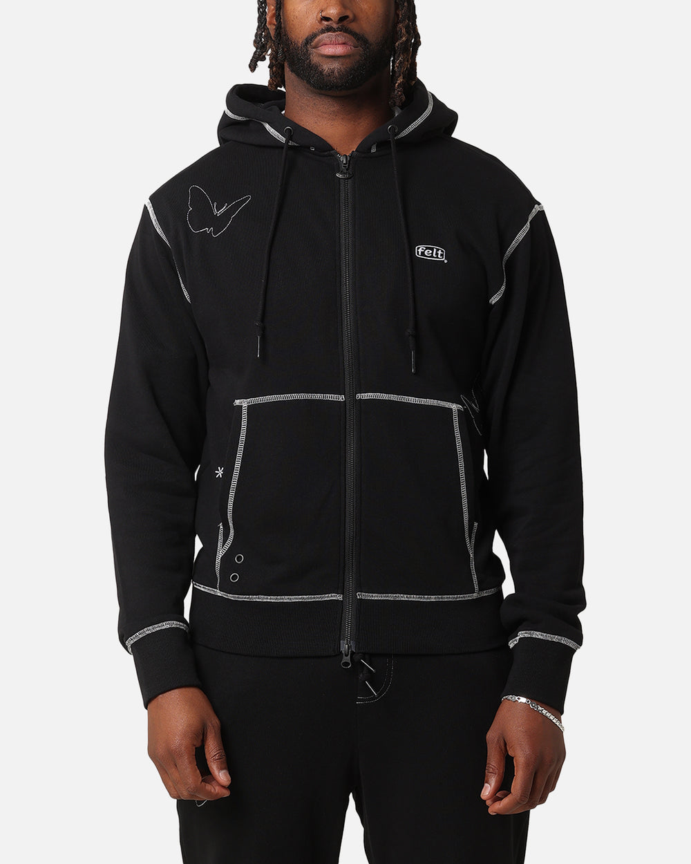 Elevate your everyday fits' with this hoodie by Felt. Featuring striking contrast stitching with embroidered graphics for a standout look. Finished with ribbed trims and a split kangaroo pocket for extra coziness. Cop yours today at Culture Kings.