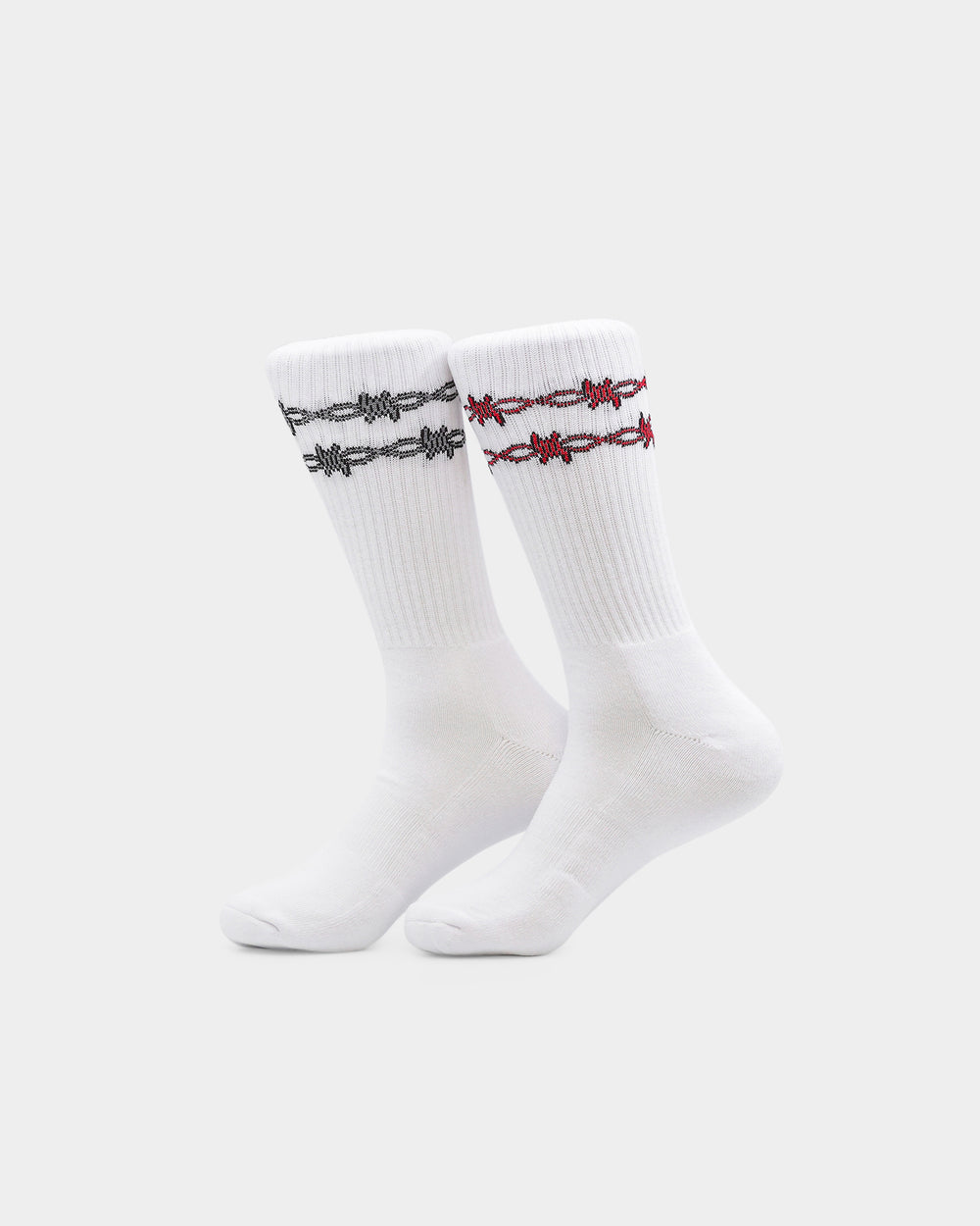 Pick up the 2 Pack Barbed Wire Socks from Goat Crew. These stylish pairs come in two colours and feature ribbing for ultimate comfort. They are finished with custom Goat Crew graphics.