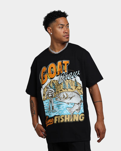 Head out in the Gone Fishing T-Shirt from Goat Crew. With custom graphics printed to the front, you'll be ready to get your catch of the day. The dropped shoulders and boxy shape of the tee give a relaxed feel. Twin needle stitching and premium cotton construction mean this tee is built to last. Cop yours today!