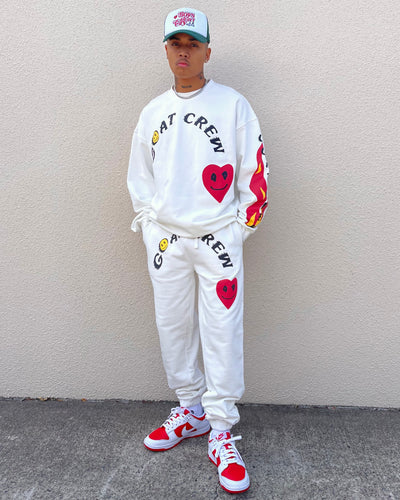 The Service Track Pants are serving looks this season. The Goat Crew screen printed graphics on the front, paired with the elasticated cuffs and waistband make these trackies stand out. Cop yours today!