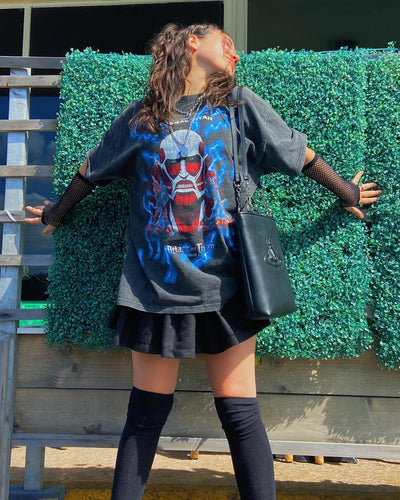 Let your style explode like the Colossal Titan with this exclusive tee. You'll have to be just as bloodthirsty as the monsters if you want to cop one of the pieces from this Goat Crew X Attack On Titan collab. The Colossal Titan Vintage T-Shirt is just one of the iconic items you can get your hands on with a vintage wash, cracked custom graphics, and quality construction.