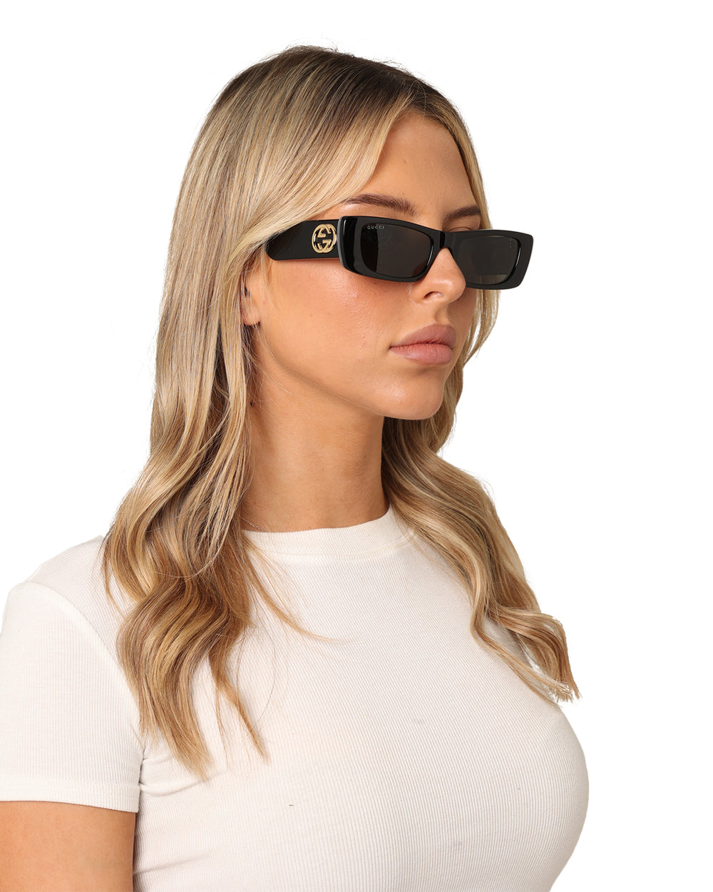 - Large GG logo at temples
