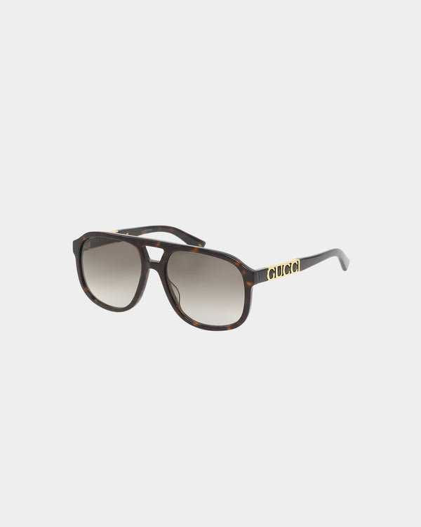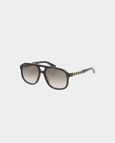 Eclectic, contemporary, romantic—Gucci products represent the pinnacle of Italian craftsmanship and are unsurpassed for their quality and attention to detail. Gucci never fails to deliver class to any 'fit. The curved frames of the GG0847SK001 glasses feature a gloss that'll put a shine on any 'fit, adding sophistication to these sunglasses. The striking detailing continues with gold detailed Gucci-branded arms and all-over tortoise shell design. What's not to love? Cop that model-off-duty look today.