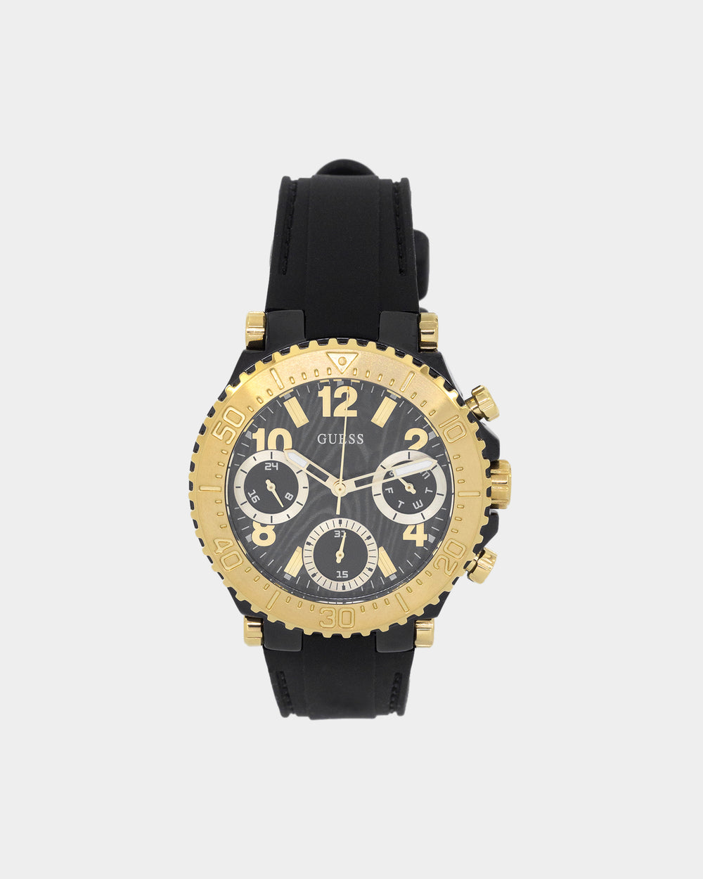 Black and gold styling is a signature GUESS look, and this style is the perfect addition to this trend. A sporty 36mm black IP case is paired with gold-tone bezel, pushers, and dial markings and a sleek black silicone strap to ensure you're always on time. Grab yours today at Culture Kings.