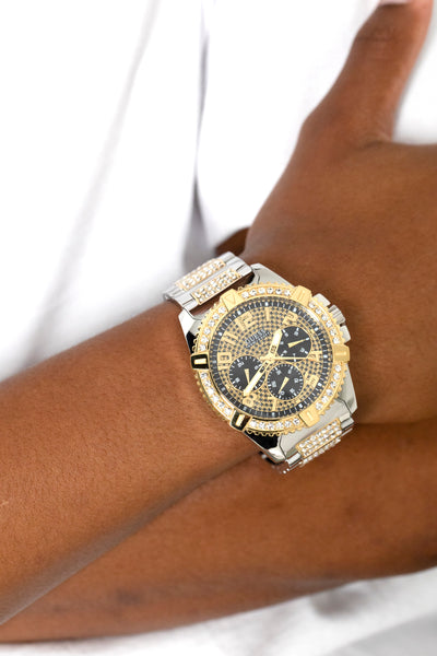 A true showstopper, this watch has it all and gives you the option of a steel bracelet or lightweight and smooth silicone strap with a black 48mm glitz dial. This is a must-have to luxe up any 'fit, grab yours today at Culture Kings.