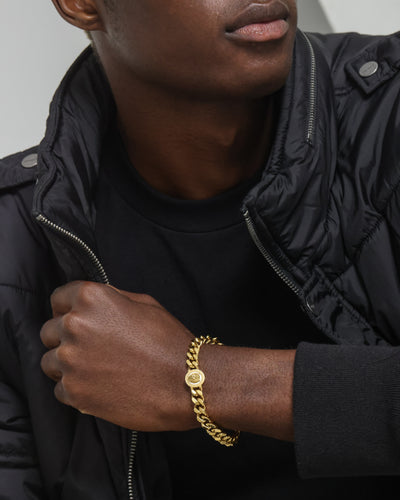 Add a touch of luxury with the Lion Coin Bracelet. The Lion head design featured is anything but temporary on a premium piece thanks to the luxe gold plating. Crafted with surgical grade stainless steel and a polished finish to spotlight your 'fit, this piece is the perfect statement on its own or layered.