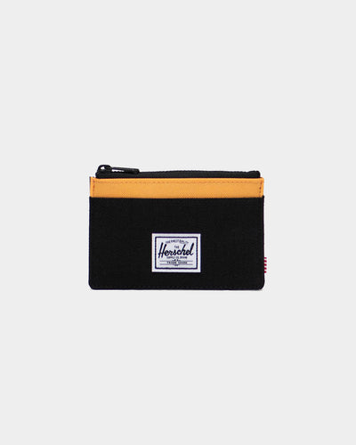 The compact and functional Oscar wallet features a zippered main compartment and external slots for cards, identification and passes.
