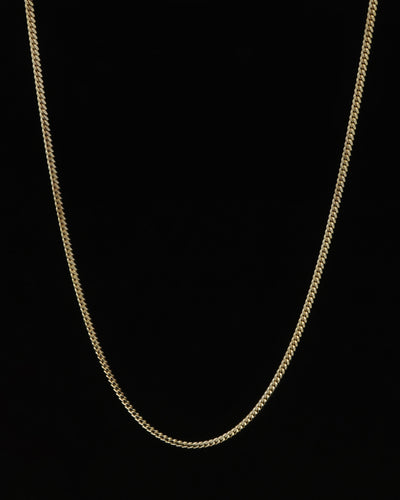 The House Of Auric Cuban Link 2.5mm 20" Chain is a premium 18k Gold Vermeil piece made in Italy. Because it's Vermeil, the 18k Gold used in this piece is up to 5x thicker than normal gold-plated jewellery and has a base of 925 Sterling Silver to ensure long-lasting quality.