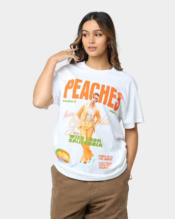 Justin Bieber has dropped new must-have 'fits, and every fit starts with a premium tee. Featuring an iconic graphic of Justin himself, the Peaches T-Shirt is Justin at his best. With a throwback band-tee design for that vintage look and feel, quality cotton and a luxe construction. Become the peach of your own world with this Bieber tee!