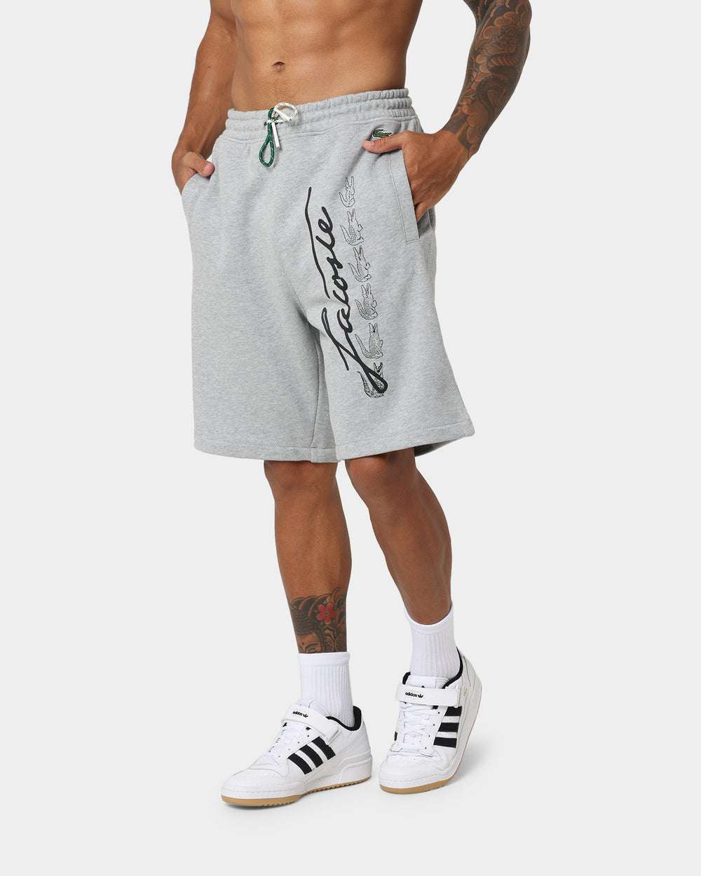 The Rene Signature Non Brushed Shorts pay tribute to the international tennis champion, René Lacoste. With a graphic print of the man's signature on the front along with crocodile motifs and a tone toned drawcord on the elastic waist, these shorts are sure to set you apart.