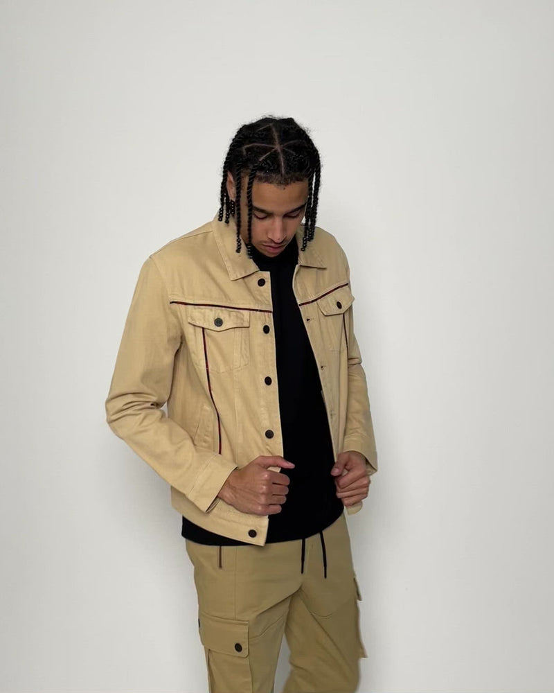 The Piping Denim Jacket from Last Kings is the final layer to your 'fit. Features contrast piping with subtle brand details, to a denim make and classic jacket build. Peep the gold buttons for a luxe finish.