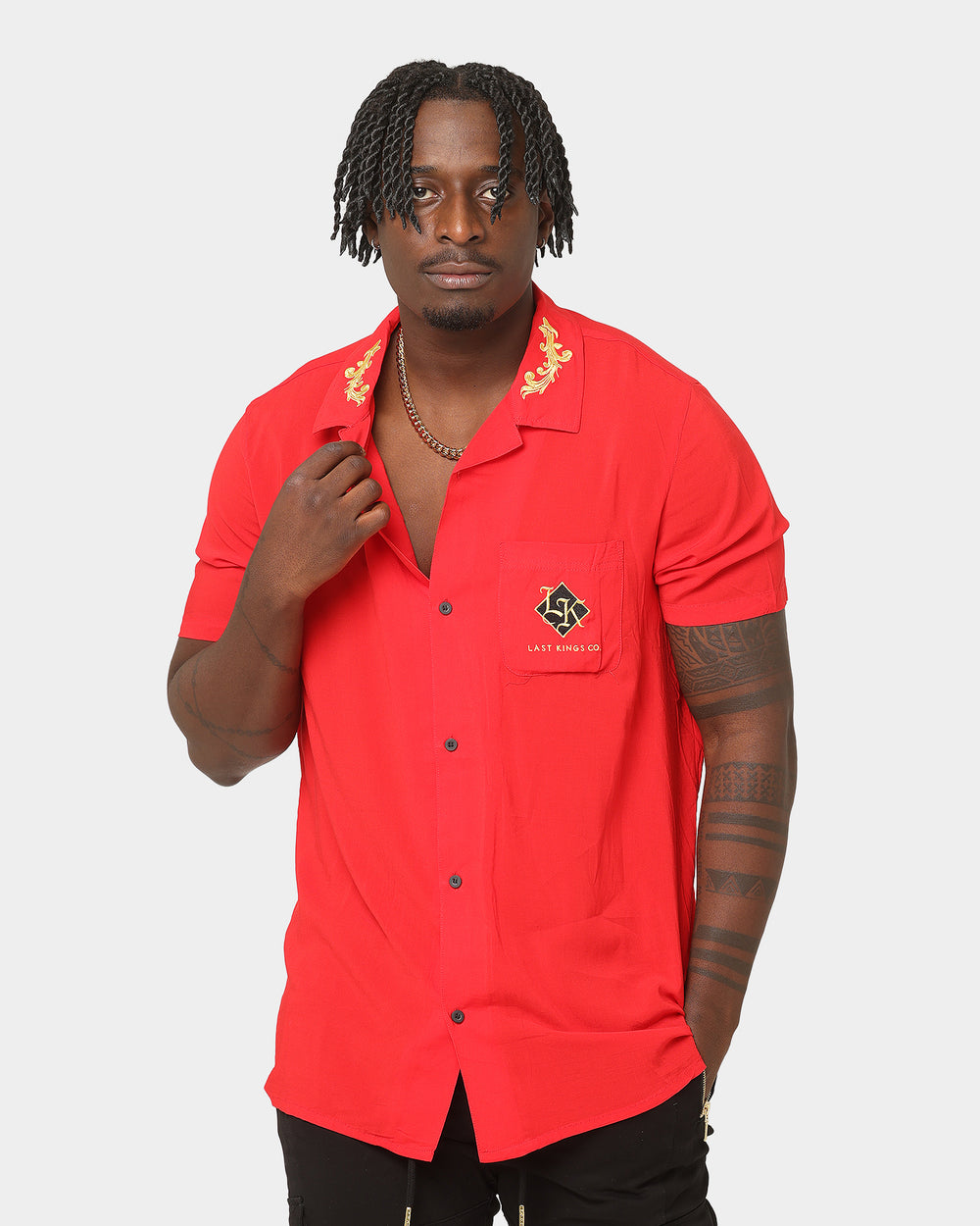 Take your rightful place in The Throne Button Up Shirt from Last Kings. Detailed embroidery features on the collar and chest pocket, on a lightweight short-sleeve button-up.