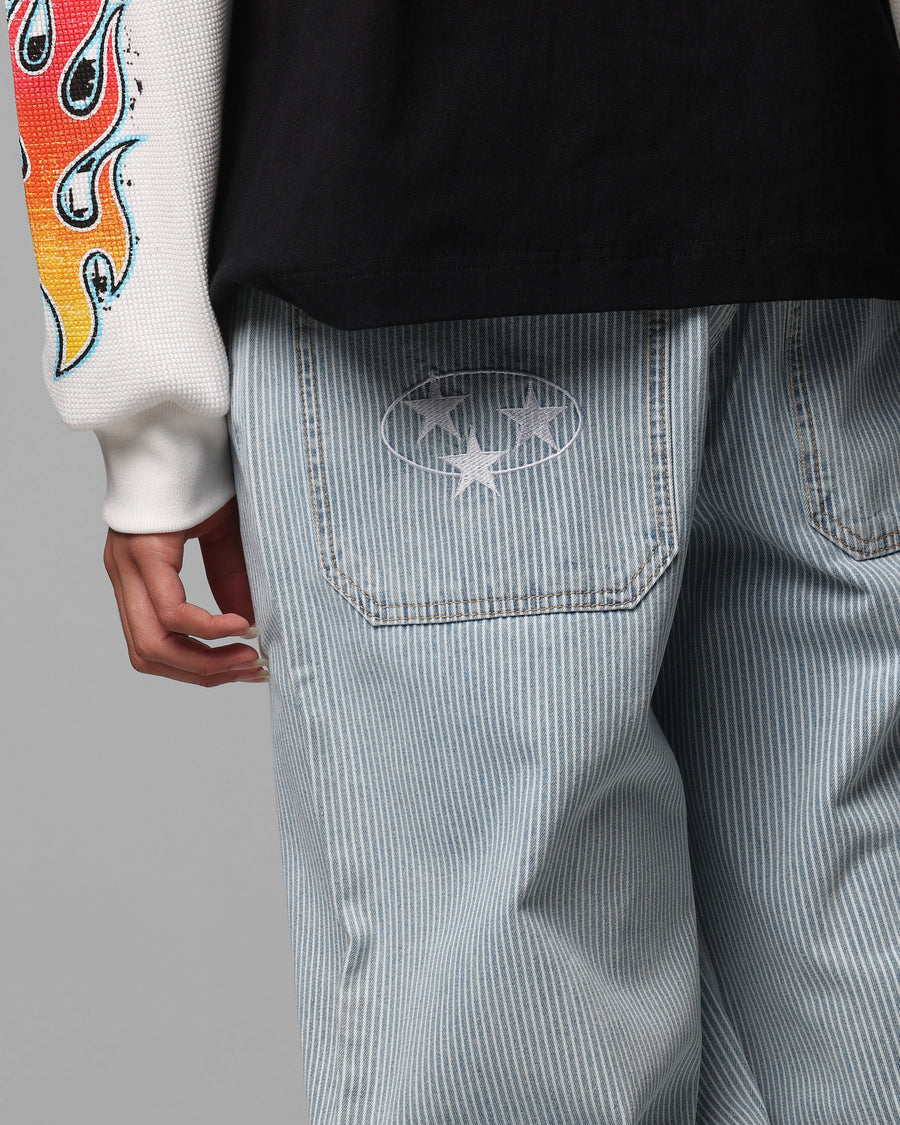 These Collateral Baggy Jeans won't make you disappear this season, in fact, they will do the complete opposite. The all-over-pinstripe print is sure to catch eyes as you walk by and topped with embroidered logos on the back pocket, these pants sure give off a look like no other. Get a pair of your own while there are still some left.