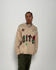 Dropped shoulders and an oversized fit create a relaxed silhouette.