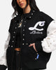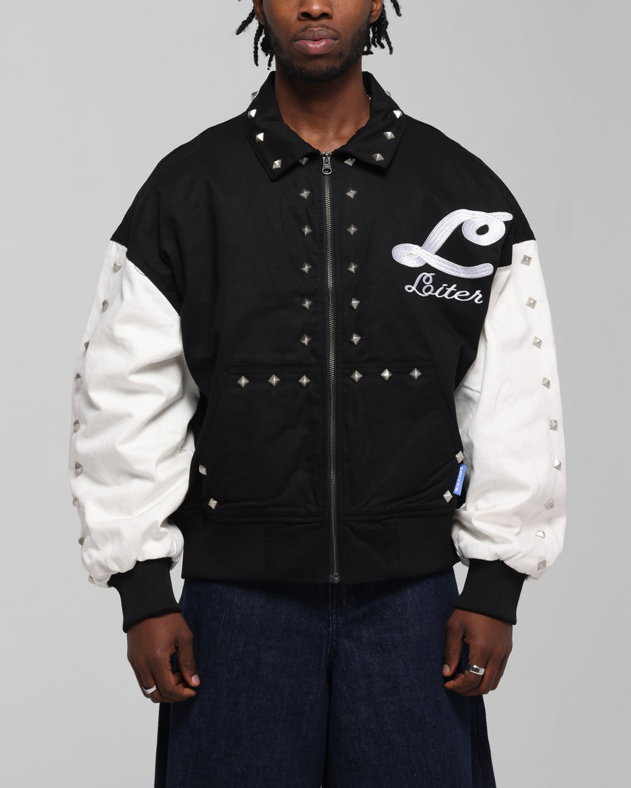 Stay warm while looking fresh and who better to heat up your wardrobe than Loiter! This jacket features embroidered graphics and metal studded details throughout that'll get you all the compliments, ribbed trims and hems add a little something extra, and the full zip closure finishes off the classic varsity jacket vibe. Cop yours today at Culture Kings.
