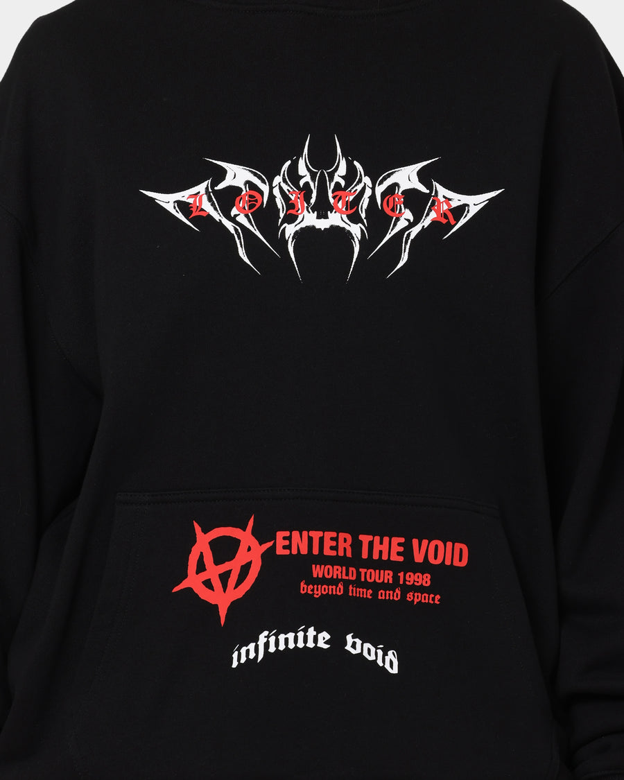 Enter the void with the Infinite Void Hoodie from Loiter. The sick custom prints to the chest, pocket, back and sleeves make for a fire look. Made with quality French Terry cotton in an oversized fit for a comfortable wear every time.