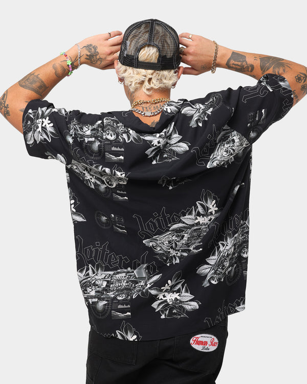 The Motor Sport Button Up Shirt is your go-to shirt for the summer. Layer it with a tank or wear on its own, this lightweight button up is going to look fire no matter how you decide to style it. Finished with black gloss buttons and an oversized fit.