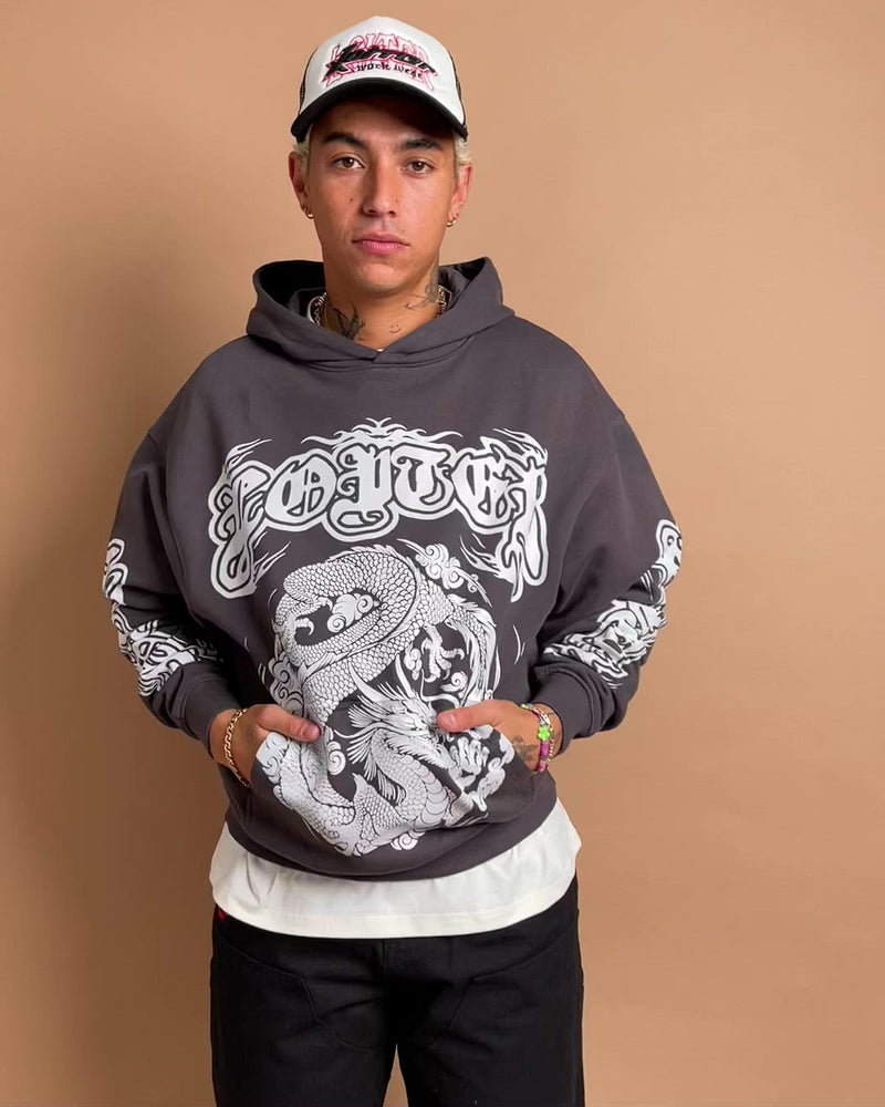 Enter the mystical oblivion with the Loiter Oblivion Hoodie. Printed artwork covers the sleeves and the front while ribbing adds comfort to the cuffs and waistband. Made in a premium heavyweight 380GSM cotton fleece.
